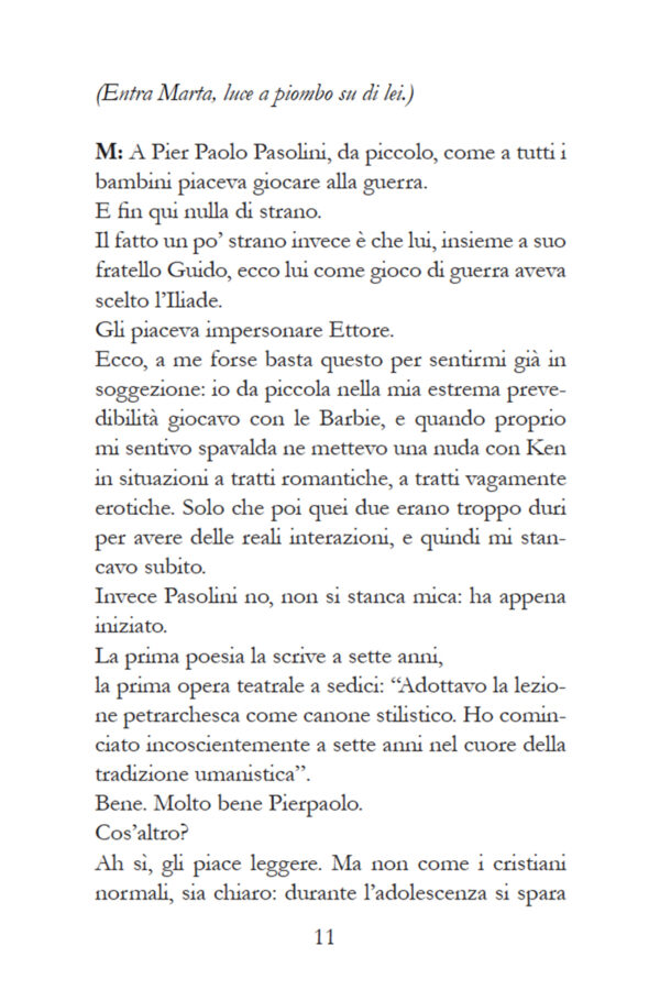 La giuria di SuiGeneris assegna come vincitrice: “Generazione Pasolini” di Marta Bulgherini, per aver messo in scena le costanti interrogazioni di una generazione che vorrebbe la complessità, ma viene ostacolata da barriere mentali imposte e autoimposte. È un bel dilemma quanto la nostra formazione individuale abbia a che fare con il tempo in cui viviamo e quanto possiamo essere l’eccezione alla regola.