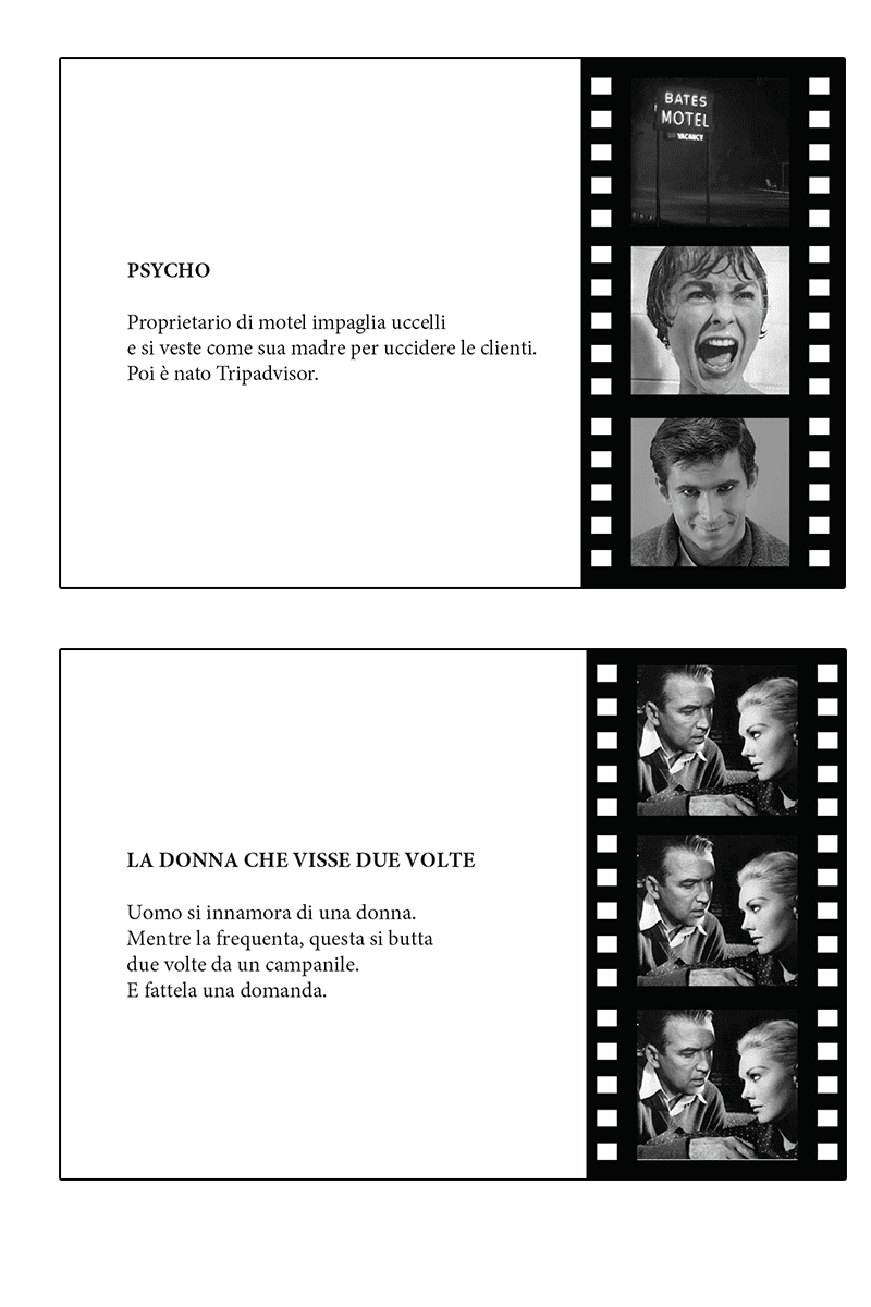 Il primo volume del famoso Gianni Morando Morandazzo. Inventore della teoria del Trerighismo: solo in tre righe si rivela l’essenza teocratica dei film al pubblico. Critico cinematografico, docente di Storia del cinema, 3°Dan. Eterosessuale non praticante. Ossessionato dalla comprensione dell’arte cinematografica, è arrivato a vedere fino a diciannove film al giorno. Un consiglio: Non provateci a casa.