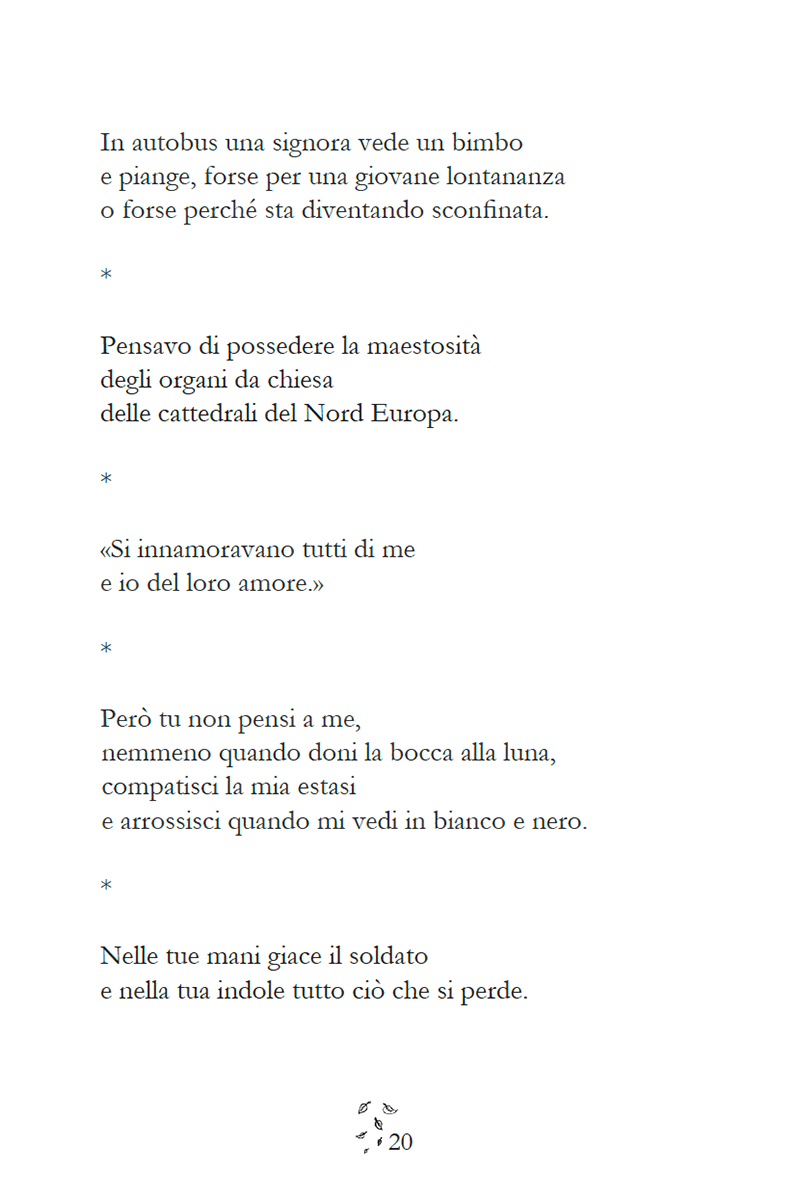 Raccolta di poesie malinconiche dedicata ai cambianti delle stagioni e personali. L’amore intriso di nostalgia, insieme a versi che hanno un’eccezionale musicalità.